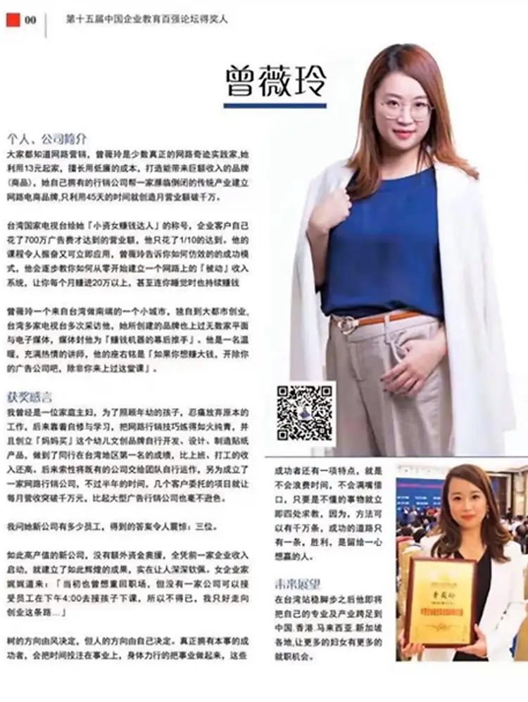 ◆ 不到兩年擁有千位正式課程學員,兩萬多位講座學員◆ 輔導的個人品牌一個月內找到數百位追隨者並成功變現6~7位數◆ 經濟日報、工商時報、中視、台視、TVBS等多家媒體採訪◆ KKBOX百大Podcast播客得獎人◆ 中國百大培訓師得獎人◆ 中國高級心理諮詢指導師◆ 裕隆汽車行銷部企業內訓 講師◆ 聯輔基金會、經濟部、勞動部行銷講師